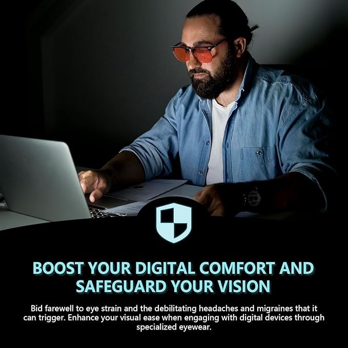 - Advanced Blue Light Filtering: Engineered with specialized lenses that block harmful blue light, these glasses provide essential eye protection during prolonged computer use, TV watching, and gaming sessions. The blue light filtering helps to reduce eye strain and supports a more comfortable viewing experience.