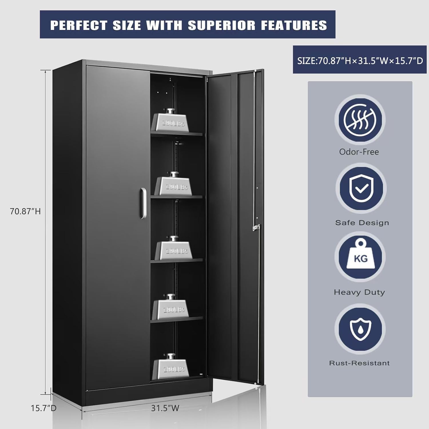 Metal Storage Cabinet with Adjustable Shelves, Garage Storage Cabinets with Doors and Shelves, File Cabinets for Home Office, Kitchen Pantry Cabinet, 71'H, Black