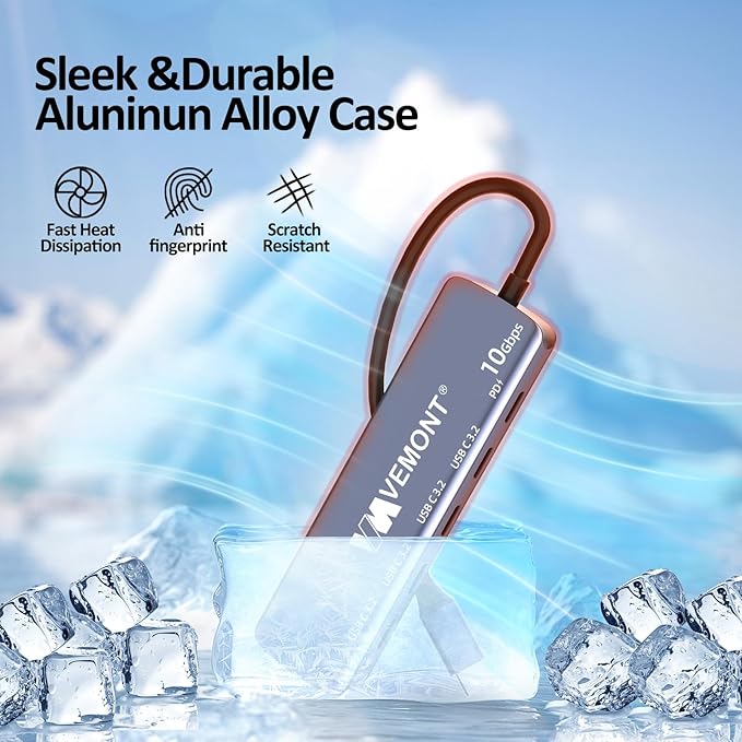 VEMONT 10Gbps USB-C Hub:4-Port 10Gbps Data Transfer and 100W PD Charging for laptops. USB 3.2 Gen 2 Standard. Compatible with MacBook, iPhone, iPad, Surface Pro, and Other USB-C Devices.