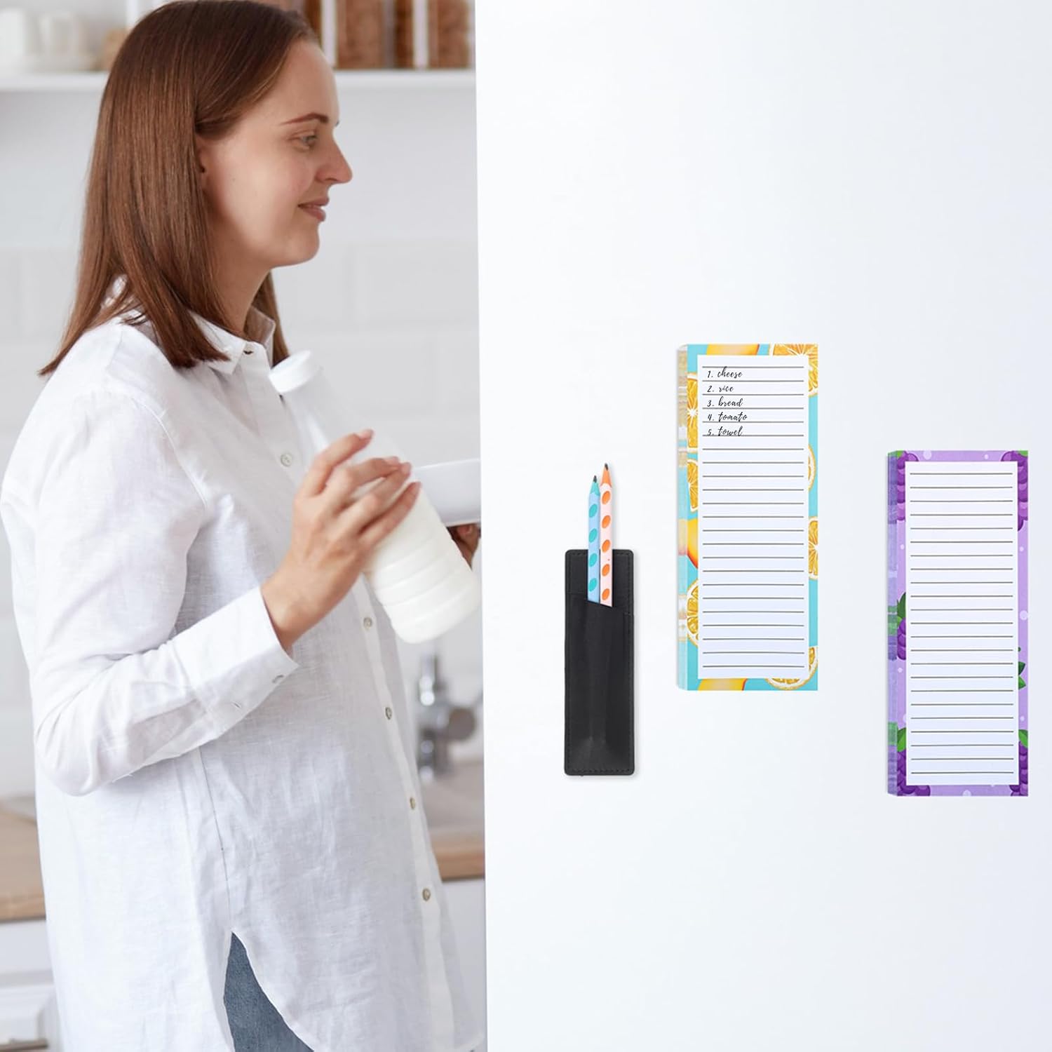 - 【Magnetic Notepad & Pen Holder】The refrigerator magnetic notepad and pen holder have built-in magnets that covers the entire back, which can stick to the refrigerator, filing cabinet or any other ferromagnetic metal surface, easy to operate and not easy to slip off, you won't need to spend time looking for your lists and pens