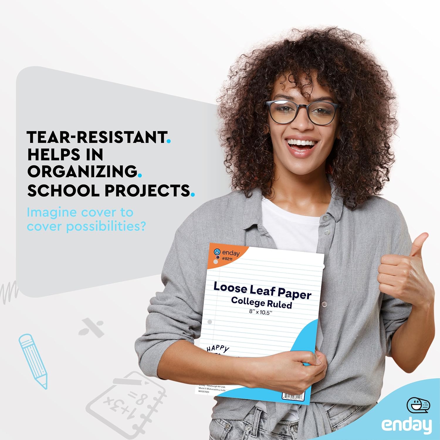 Loose Leaf Paper College Ruled Notebook Paper, 8" x 10.5" Filler Paper White, 3 Hole Punched Binder Paper for 3 Ring Binders, Lined Paper 150 Sheets Per Pack (2 Pack) - By Enday