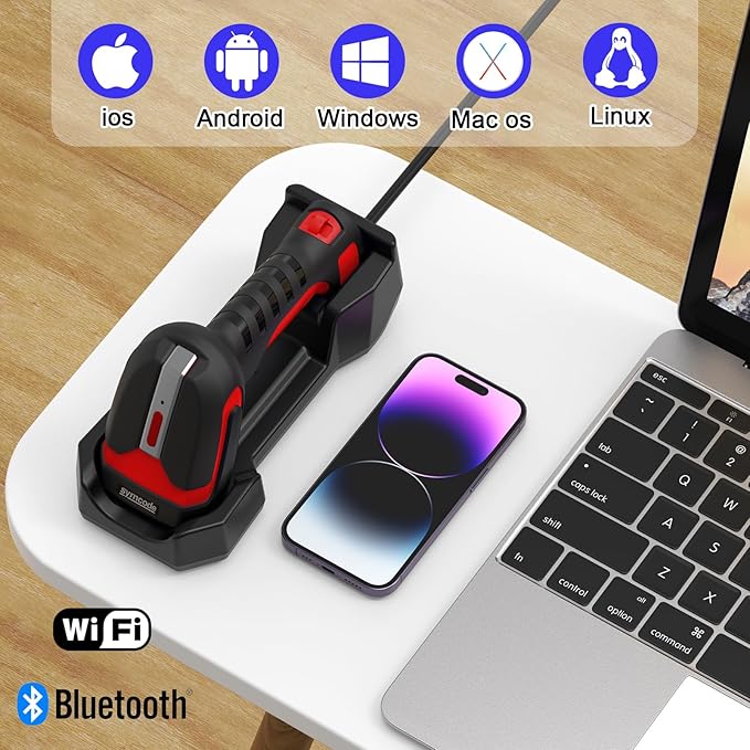 - 【Compatible with Bluetooth & 433Mhz Wireless】This scanner works with Bluetooth and 433Mhz wireless.The transmission distance can be 1968 ft in barrier free environment and 1312 ft in obstacles environment using