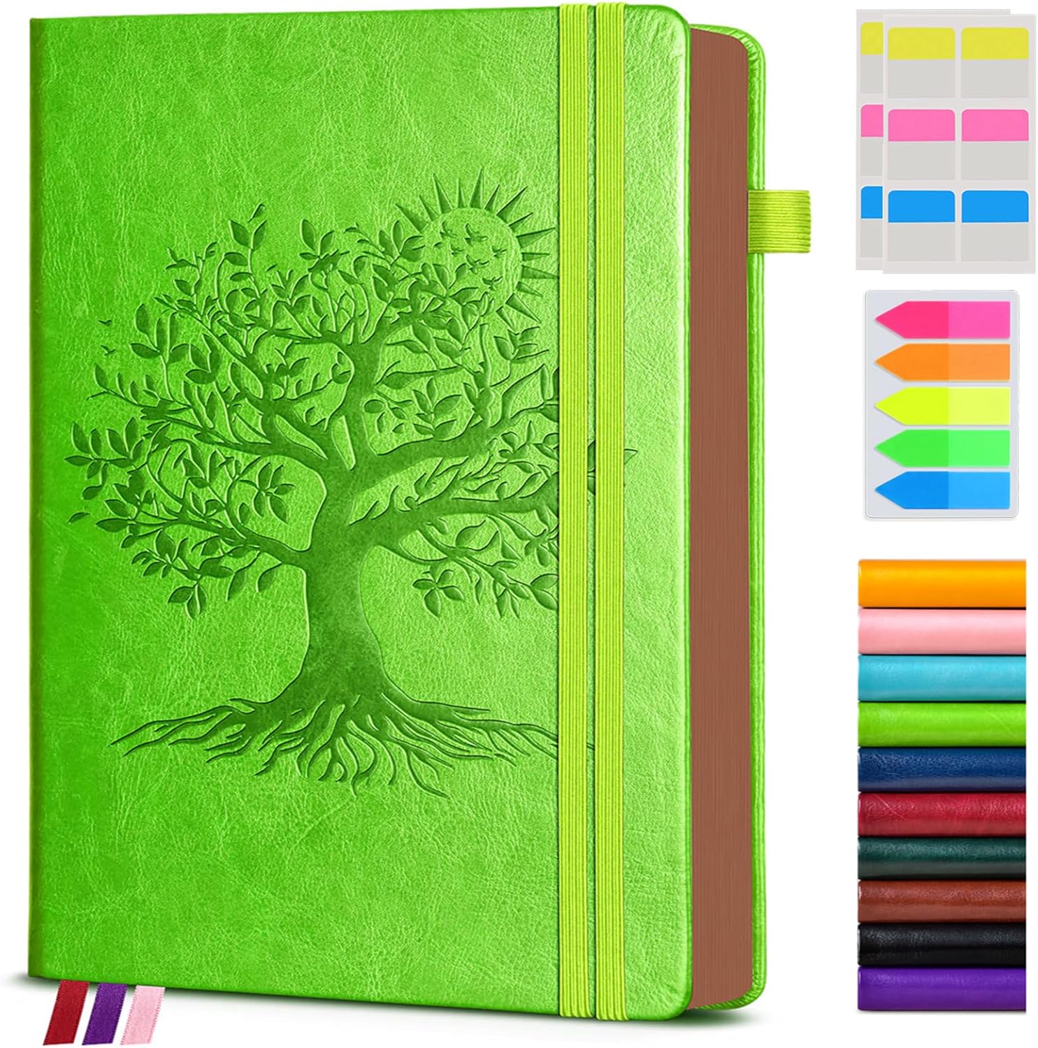 - 【BUILT-IN FEATURES FOR CONVENIENCE】This journal notebook comes with several useful features.The 1 built-in back pocket is ideal for storing loose papers or small items. The 1 elastic pen holder keeps your pen handy at all times.The 2 elastic closures ensure that the notebook stays securely closed.Additionally, the 3 colored ribbon bookmarks help you easily find your place.And the 3 free sticky tabs are great for marking important sections.