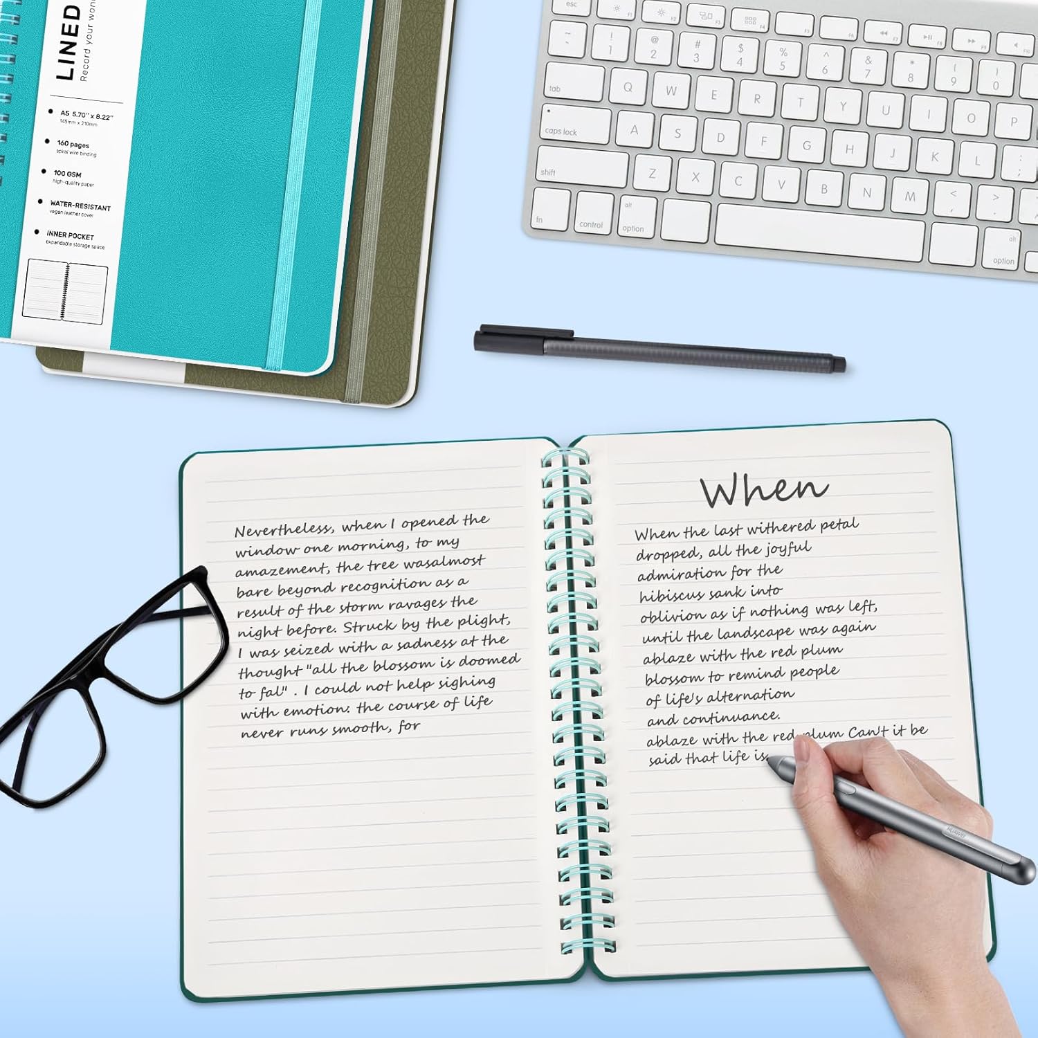 - 160 Pages A5 Notebook - This medium 5.7 x 8.2 inches A5 lined journal notebook features a waterproof brown faux leather cover, 8mm space classic college ruled notebook, total of 160 pages. The professional durable water-resistant plastic hard cover will protect your notebooks, which have oil-resistant and anti-bending properties, effectively protecting the internal paper of the journal and providing a comfortable writing surface.