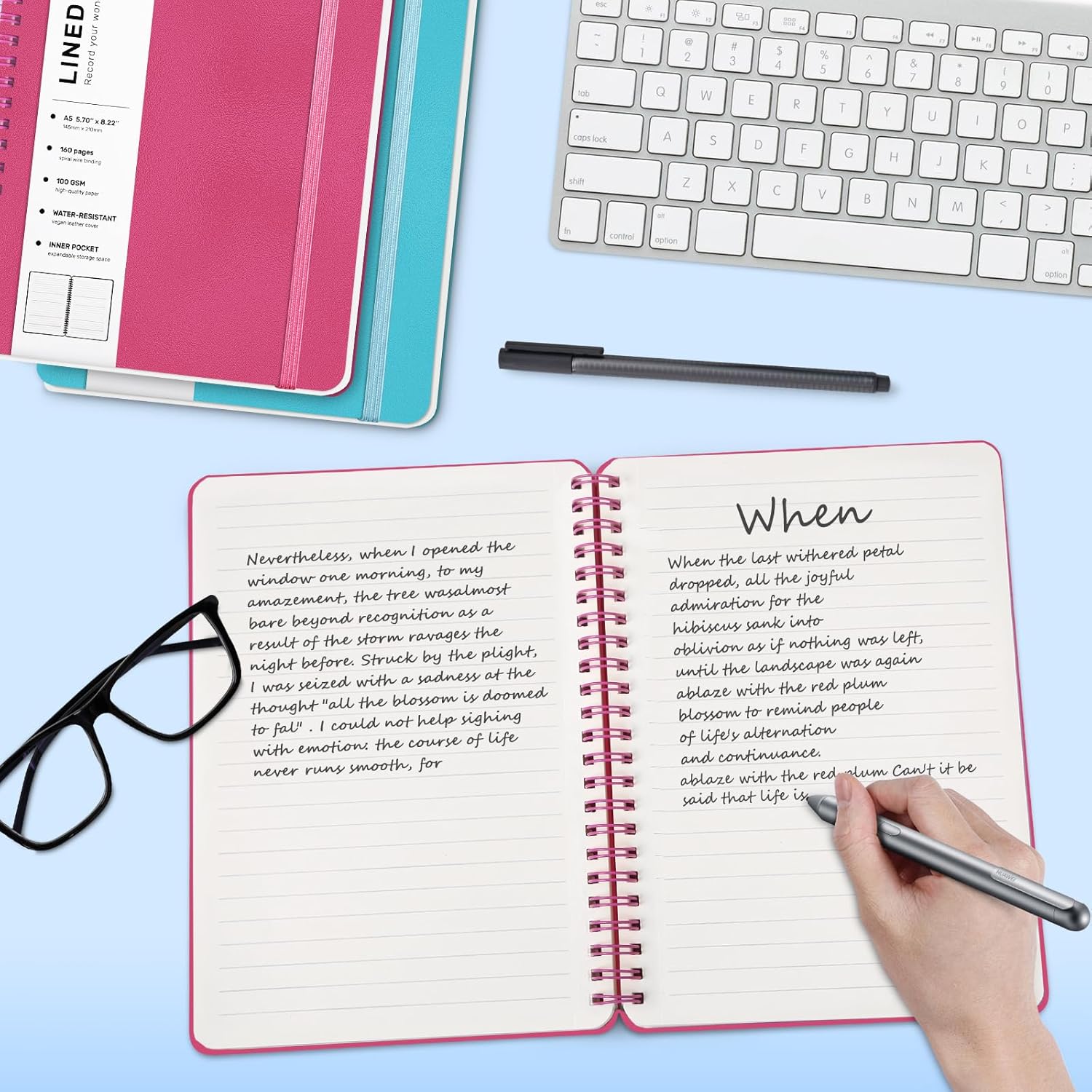 - Strong Spiral 180° Lay Flat Design - The 180° lay flat design makes writing easier, reading more convenient, and taking notes more efficient. At the same time, the hardcover notebook is designed with an elastic closure band to make it tightly closed to protect your content, and the inner paper will not be curled and kept flat. Our notebooks have perforated lines on every inside page to tear off paper easily.
