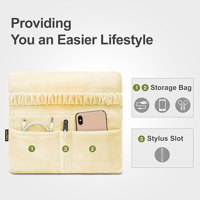 MOSISO Tablet Pillow Stand,Soft Tablet Holder for Lap,Tablet Soft Pad Dock with Pockets&Stylus Slot&4 Viewing Angles Compatible with iPad Pro 12.9,11,10.5,9.7,Air Mini 6,5,4,3, E-Reader, Pastel Yellow