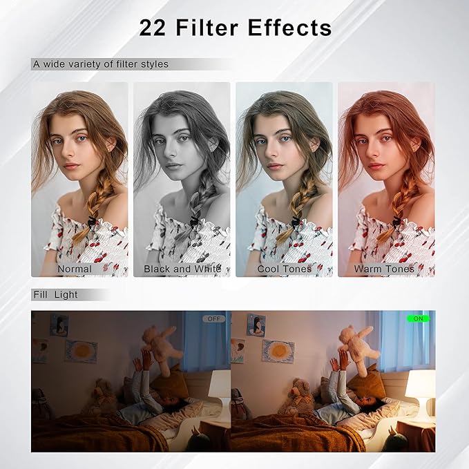 - 【FHD 1080P Video & 48MP Photo】This digital camera equipped with the newest CMOS image sensor and anti-shake function, which helps to capture vivid clear 48MP Images and record stable smooth FHD 1080P resolution videos. This camera has a built-in microphone to help you record every wonderful Vlog in your life.