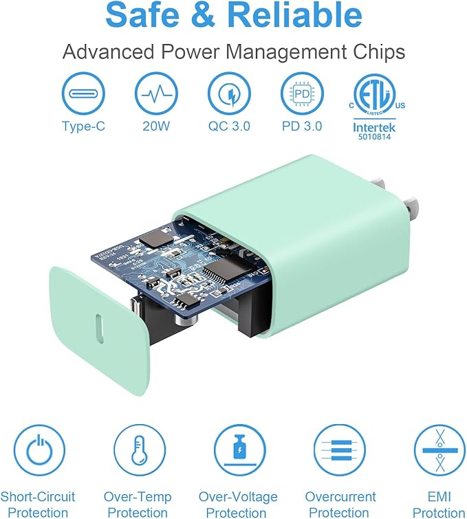 - 【iPhone 16 Charger】20W PD USB Type C power delivery wall plug, PD adapter 3.0 Quickly Charge , USB-C port provides Max 20W output power, 3X faster than standard USB charger. charging your up to 50% in just 30 minutes for iPad Pro Charging, At 3A Maximum, Helps You Work Efficiently.