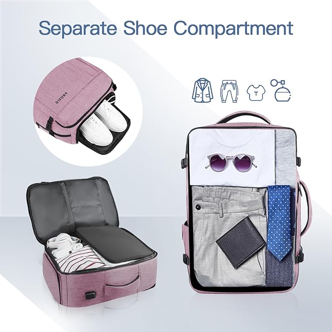 - Expandable & Extra Large Capacity: This 50L carry on backpack airline approved expands to provide more packing space. It fits overhead and under seat compartments, meeting standard carry on size for most airlines . Ideal travel backpack for women, weekend trips, and Europe vacations.