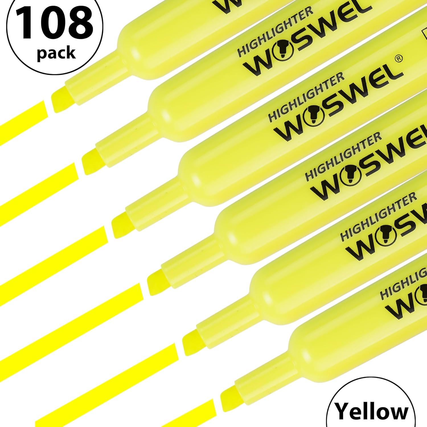 - Large 108 Pack chisel tip tank style yellow highlighters come in a box, classroom bulk pack.