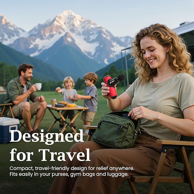 - Fits Effortlessly in Purses & Small Hands – At just 5.7” long and 0.95 lbs (lighter than a water bottle), this sleek red massage gun slides into makeup bags, gym totes, or even your work backpack. The contoured, no-slip grip is designed for smaller hands, reducing wrist strain while tackling hard-to-reach knots in your neck, shoulders, or lower back. Its travel-friendly size and lightweight build make it perfect for quick relief at the office, post-workout recovery, or even during flights.