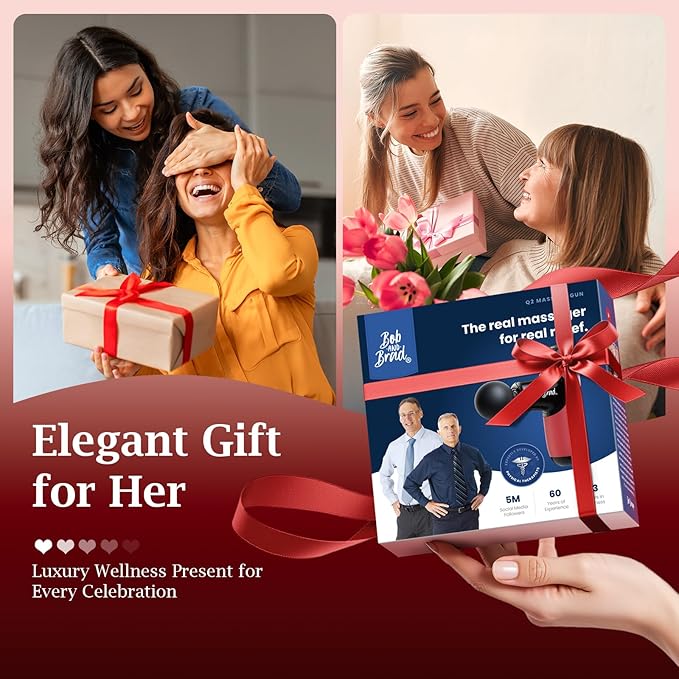 - Elegant Red Massage Gift for Her – Designed to delight, this deep tissue massage gun is the perfect present for birthdays, Mother's Day or holidays. The lustrous red finish and ergonomic shape combine beauty with effective muscle relief. Packaged in a luxury gift box with a premium carrying case. Backed by BOB AND BRAD's therapy expertise, it's a thoughtful way to show you care about her wellness.