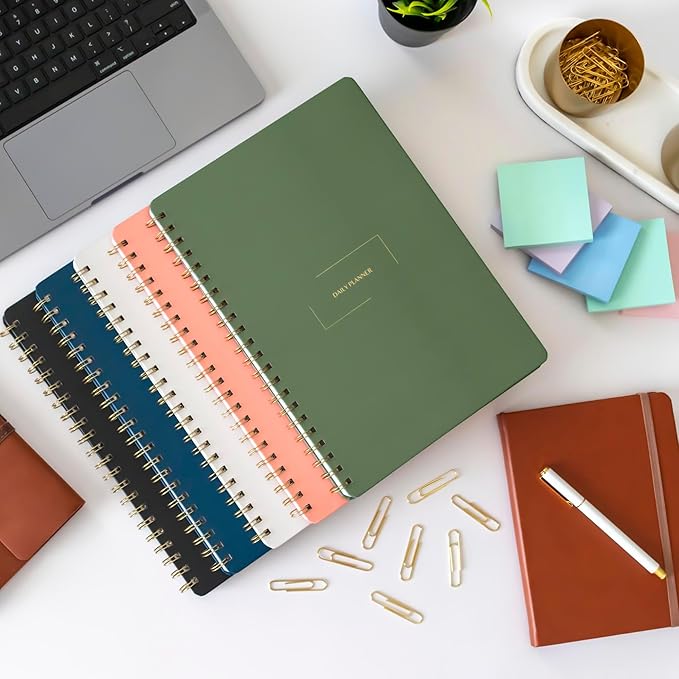 - Versatile Day Planner: Our durable and sleek day planner combines a daily planner, weekly planner, and notebook in one, offering a versatile solution for all your organizing needs. Available in multiple colors and layouts, it measures 8" x 11.5" and is an essential desk supply for women office aesthetic.
