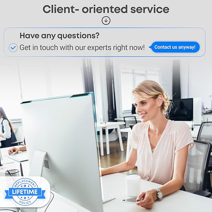 - Lifetime Replacement Policy: Blue light filter extends screen longevity by shielding against scratches, dirt, and dust. Damaged screen - Free replacement