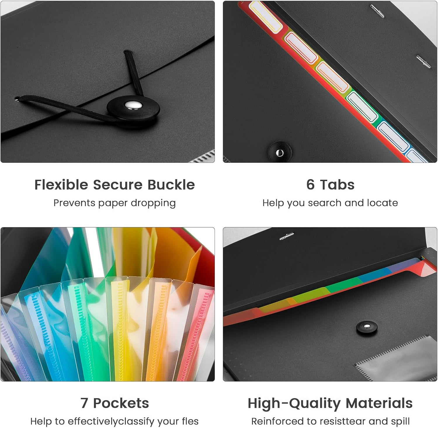 - EXPANDING FOLDER: 7-pocket file allows you to organize by subject. Keep all of your important documents securely, and help to classify and find your files effectively