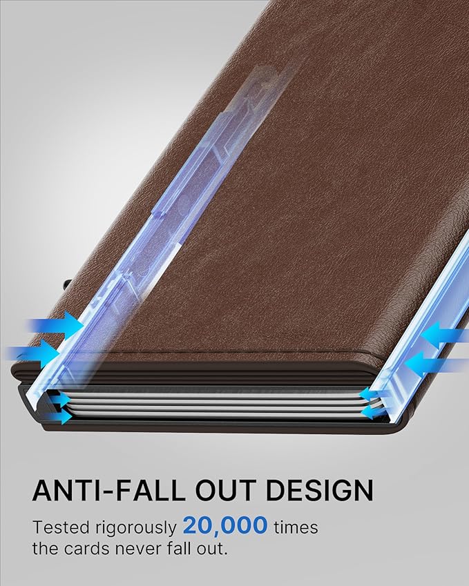 - 𝗘𝗳𝗳𝗶𝗰𝗶𝗲𝗻𝘁 𝗖𝗮𝗿𝗱 𝗔𝗰𝗰𝗲𝘀𝘀: Designed for speed, this wallet's Smart Pop Up mechanism allows you to instantly view and select your cards.