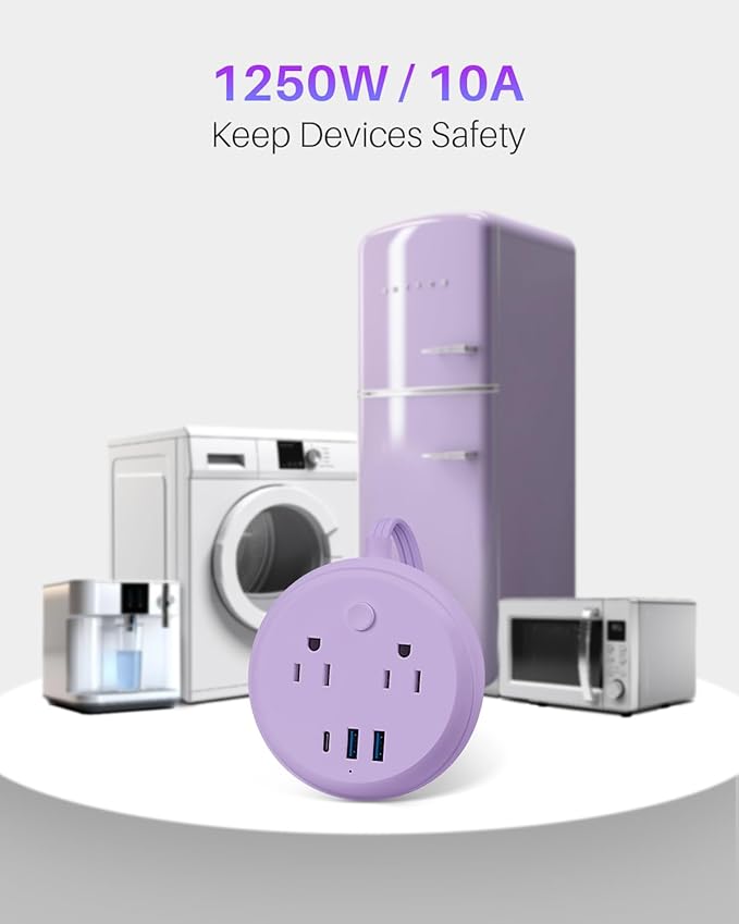- Power Up to 5 Devices - With 2 AC Outlets, 1 USB-C Port, and 2 USB-A Ports, you can power and charge up to 5 devices, keep your desktop organized. 10 Ft Slim Extension Cord (1250W/10A), sturdy and durable. Plug Design for easy unplugging and plugging.