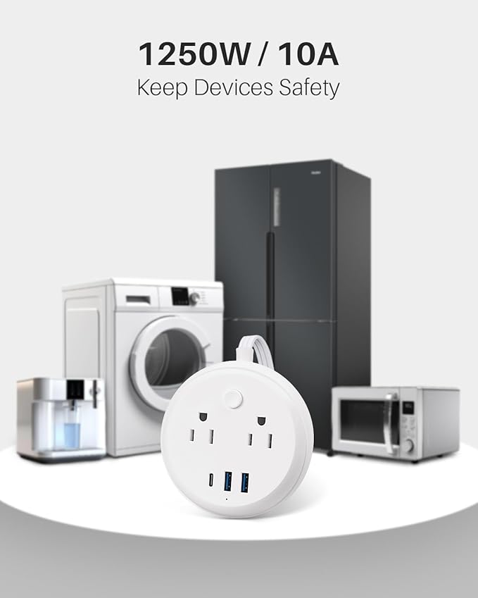 - Power Strip with USB C - It features 1 USB-C port (up to 5V/3A -15W) and 2 USB-A ports (up to 5V/2.4A -12W each), totaling 15.5W Output, automatically detects connected devices and optimizes charging speeds, offering versatile charging options. Idea for USB devices like cell phone, tablet, earphone, etc.