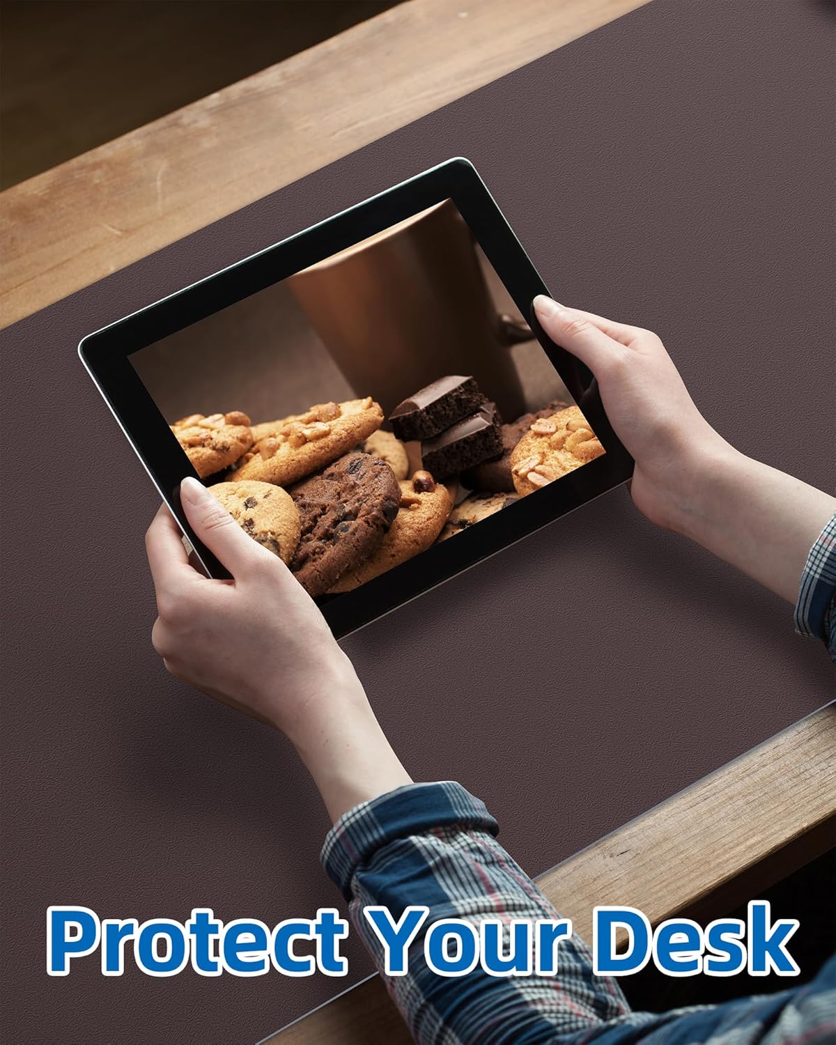 Leather Desk Pad Protector,48" x 23"Large Desk mat,Office Desk Mat, Non-Slip PU Leather Desk Blotter,Mouse pad,Waterproof Keyboard mat for Office/Home/Decor (Coffee)
