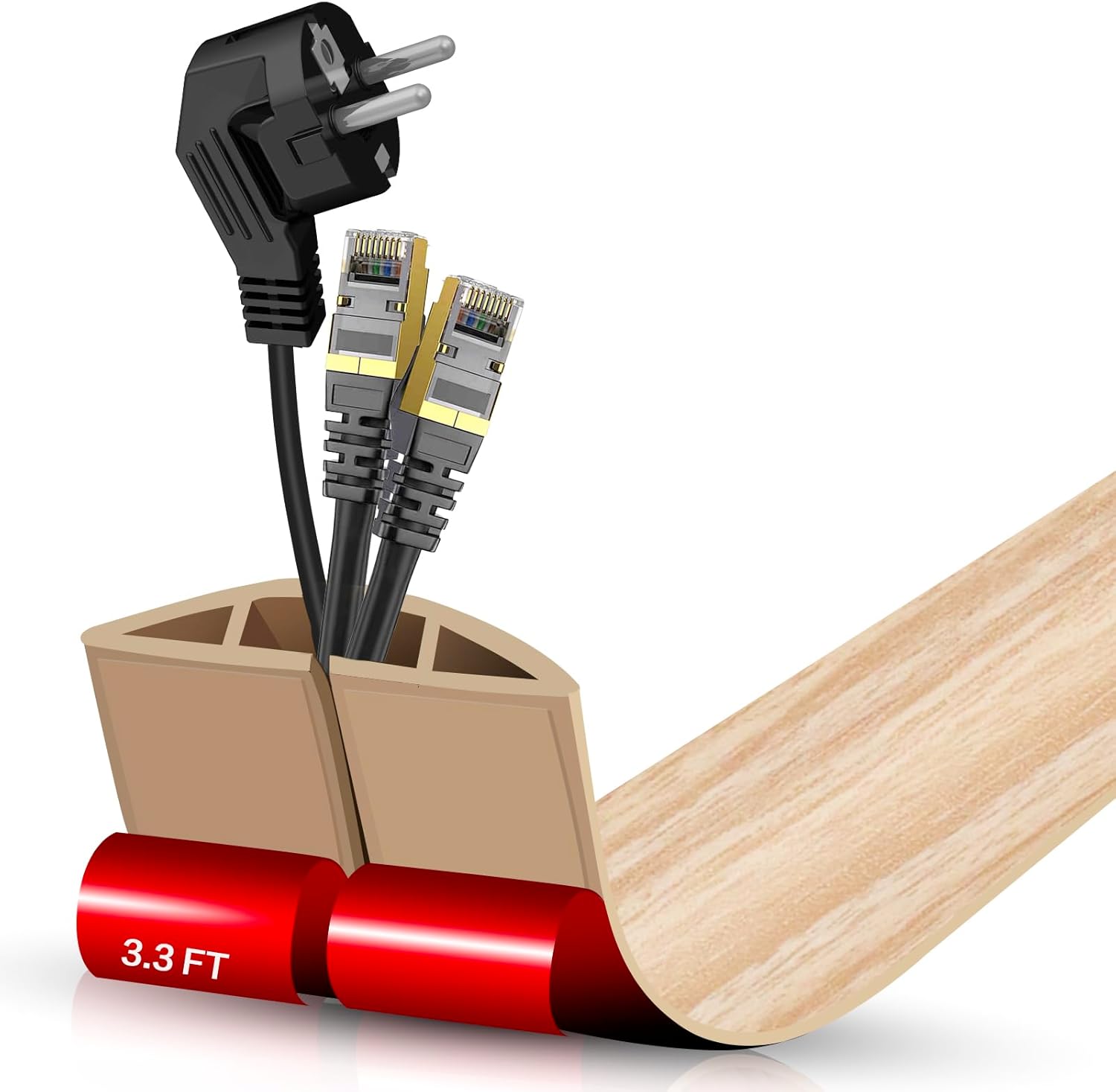 Floor Cord Cover Self Adhesive Cord Hider,3.3FT Cable Management, Extension Strip Protector for Wires, Prevent Cable Trips for Offices, Gyms, Exhibitions Cavity:0.51"(W) x0.3(H) WoodLightyellow