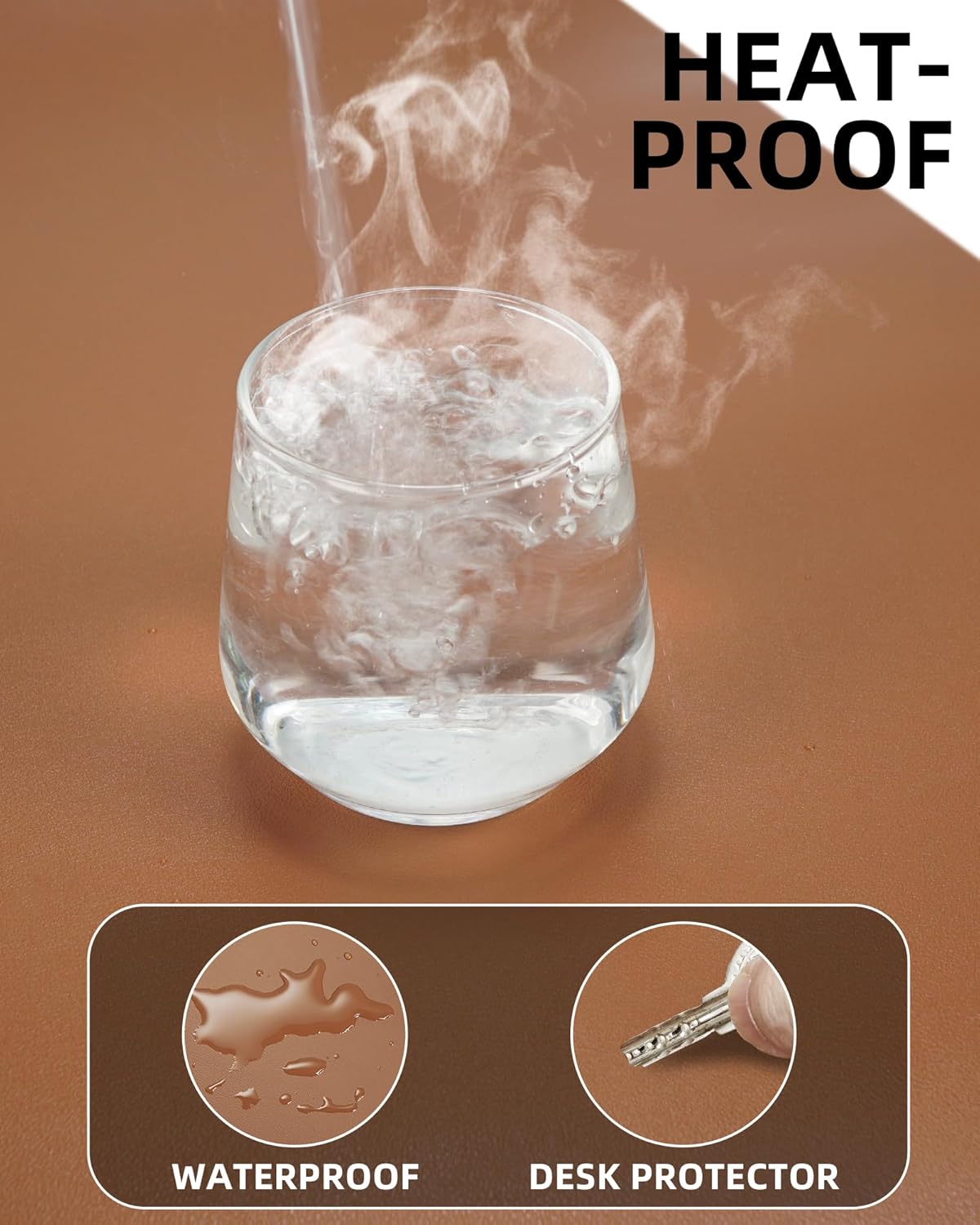 Leather Desk Pad Protector,55"x17" - Premium Desk Mat, Office Desk Mat, Large Mouse Pad,Non-Slip Desk Blotter,Waterproof Desk Writing Pad for Office and Home(Brown)