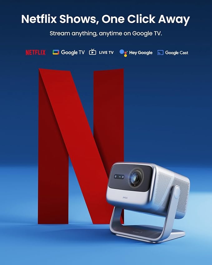 JMGO N1S Pro Triple Laser 4K Projector with WiFi and Bluetooth, 2250 ISO Lumens, 1600:1 Contrast, GTV, 360° Real-time Auto Focus, 300", HDR10, Dolby Digital Plus, Portable for Home Outdoor