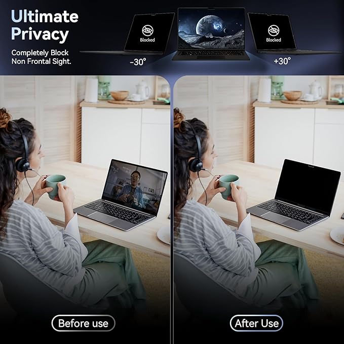 - Protect your eyes: Surface privacy filter uses high-quality materials imported from Japan and unique technology to reduce UV light by up to 92% and blue light by 95%. This essential tool not only protects your screen data, but also prevents eye strain. Helps you reduce eye pressure and relax the eye muscles. Privacy film is a smart investment that protects your data and yourself.