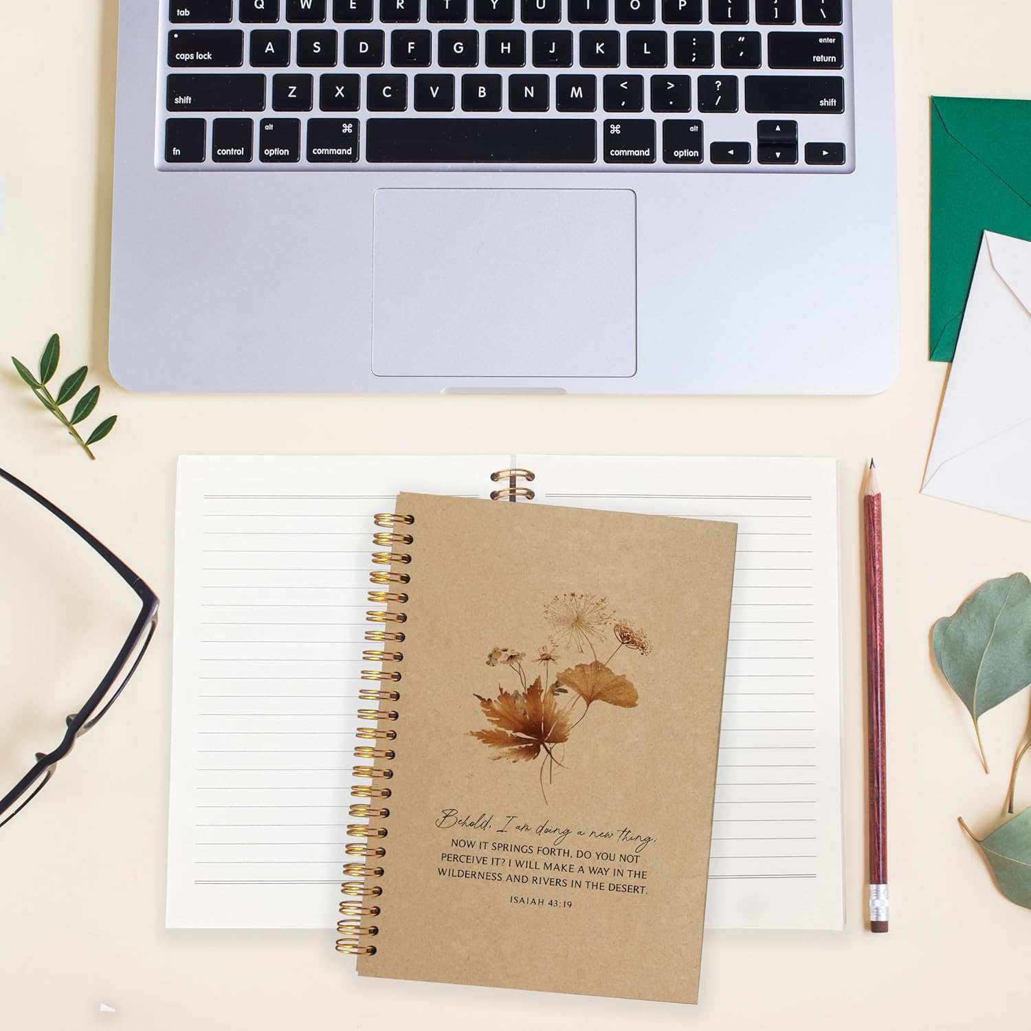 Behold I am Doing a New Thing Floral Christian Notebook Journal, Christian Gifts for Women, Bible Notebooks for Note Taking, Bible Journaling Notebook, Hardcover Spiral Notebook 5.5x8.3 kraft paper