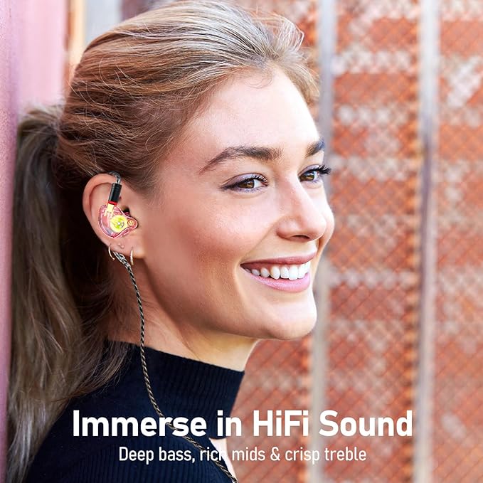 - SLEEK & DURABLE - With its sleek, semi-transparent design and durable resin shell, Vibes 202M wired ear buds come in 7 vibrant colors, allowing you to express your unique style. The 24K gold-plated MMCX and 3.5mm connectors ensure reliable, long-lasting contact, while the Litz-braided cable is both durable and tangle-resistant. Each pair is well-made with meticulous craftsmanship, from the internal components to the finished product.