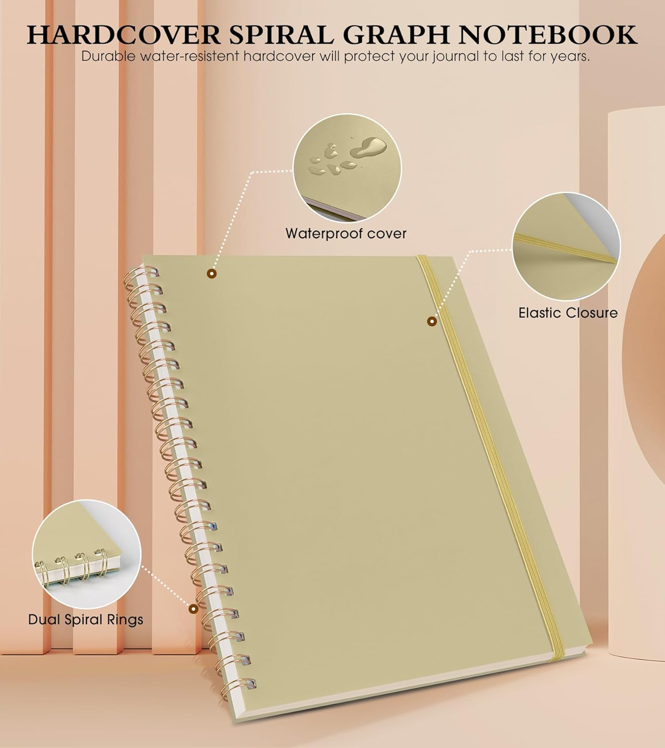 - 【Strong Spiral Metal Twin-Wire】 Our spiral graph paper notebook has a sturdy gold-color double wire spiral with easy-to-turn pages and keeps pages attached reliably, while still staying flat when opened, which reading more convenient and taking notes more efficient. Spiral grid notebook easy to tear-off and fold over, as well as flip the cover back, giving you a better writing experience. Golden spiral bound adds aesthetic matching, it’s the perfect big notebook for journaling.