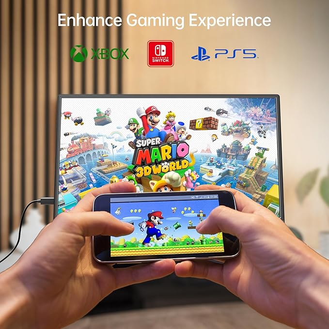 - Wide Compatibility - Enjoy hassle-free plug-and-play functionality with the portable monitor. it is compatible with all devices equipped with HDMI and USB Type-C ports like laptops, PS, XBOX, SWITCH game consoles, No app or driver installation required.
