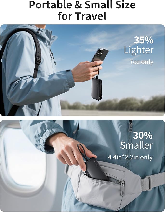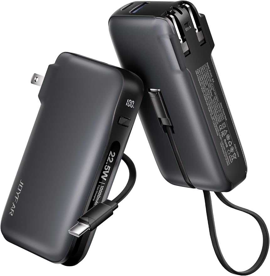 - Portable Charger with Built-in USB-C Cable & Wall Plug: No more extra cables or adapters. It comes with a built-in fast-charging USB-C cable, a foldable wall plug (recharge anywhere there’s an outlet, or pass-through charging while the power bank refuels). Simple convenience
