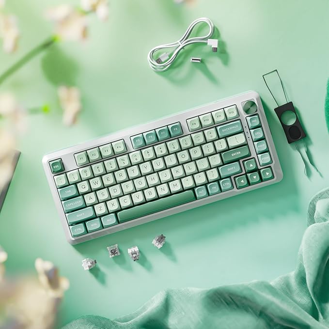 - 【Tri-mode Connection & 4000 mAh Battery】This 75% keyboard supports BT (3.0+5.0), 2.4GHz wireless, and USB wired connectivity, which can be easily and seamlessly connected and switched with devices up to 10 meters away via the buttons on the left side of the keyboard for efficient multitasking. In addition, this rechargeable keyboard is equipped with a high-capacity 4,000 mAh battery, which allows you to shrug off battery life anxiety