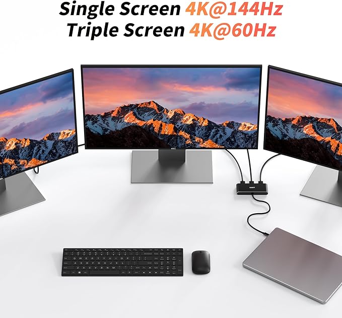 - 4K@144Hz High Resolution: This product supports a maximum resolution of 4K@144Hz for a single screen, and can output up to 4K@60Hz resolution simultaneously across 3 screens. To achieve the above resolutions, the computer must support DP Alt 1.4 + DSC.