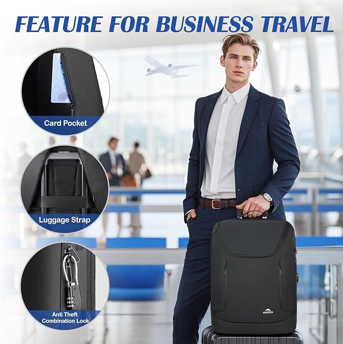- Waterproof High Tech Material: MATEIN Waterproof laptop backpack for men is made from luxurious matte PU fabric with a blue polyester lining to protect document & plan from spills or rain. Equipped with a zippered card pocket on the left shoulder strap ideal for cash, credit cards. Abrasion-resistant smooth top handle makes it a convenient commuter backpack. The breathable & ventilated design of anti theft business backpack with soft padding on the back takes the pressure off shoulders and back
