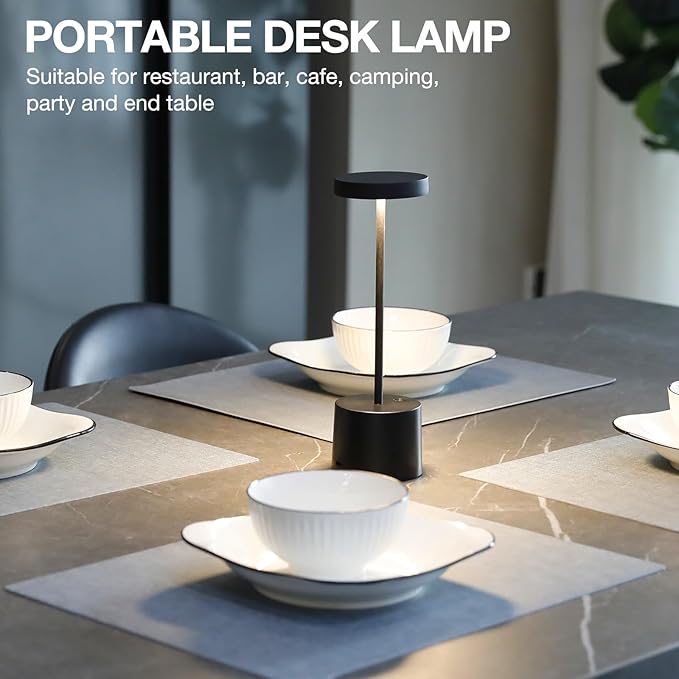 - Stylish and Minimalist Design: With the simple modern circular lampshade design and non-slip pads at the bottom, the LED cordless lamp are elegant and durable, and also the LED soft light can protect your eyes. You may get 10.1 inch portable lamp for any scenario. The cordless battery powered lamp is suitable for outdoor camping, kitchen, bar, cafe, dinning table, party light, living room, patio, courtyard, garden and bedroom