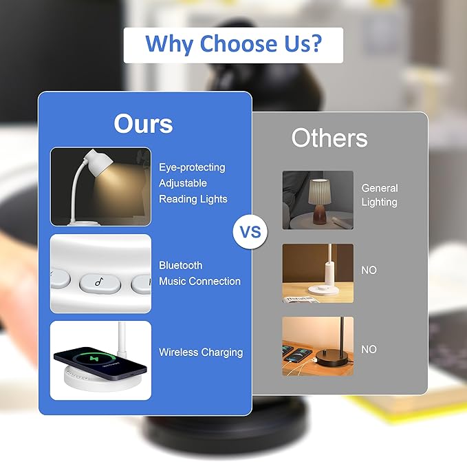 - 【3 IN 1 BLUETOOTH SPEAKER WIRELESS CHARGING DESK LAMP】 This LED lamp is not only a stylish table lamp, but also equipped with 15W wireless charging and 5W Bluetooth speaker. Lets you effortlessly charge your phone while working or studying. You can use this Bluetooth speaker wireless charging desk lamp while reading, studying, working and sleeping.