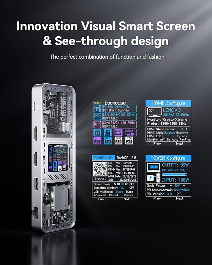 - Dockcase Smart USB-C Hub: 10-in-1 Explorer Edition is the ideal hub for your workspace. With its customizable display and multiple ports, it effortlessly transforms your laptop or desktop into a fully equipped workstation