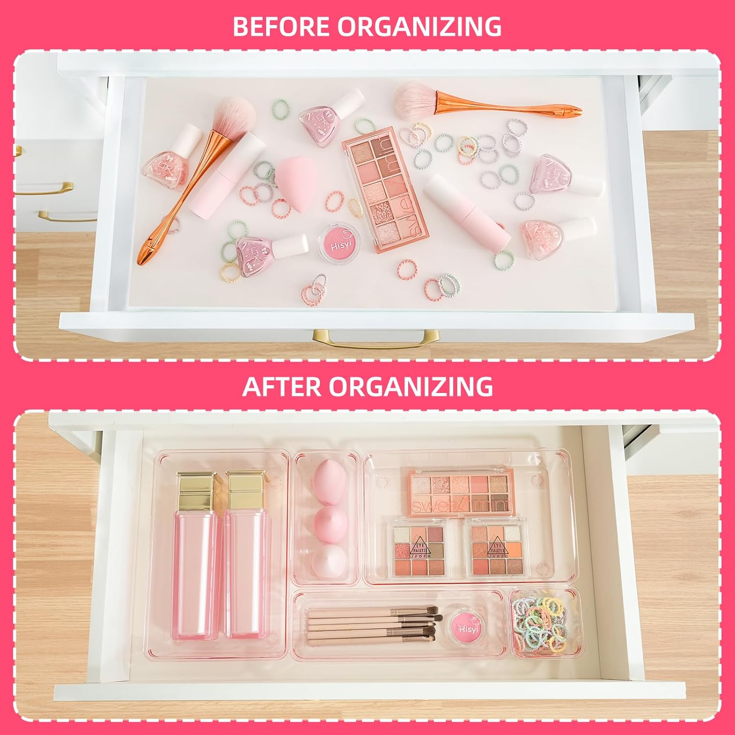- 【EASY TO CLEAN】 Our acrylic drawer organizer is easy to wipe clean with a damp cloth, convenient for you to use it in your daily life and make your room look more beautiful and organized.