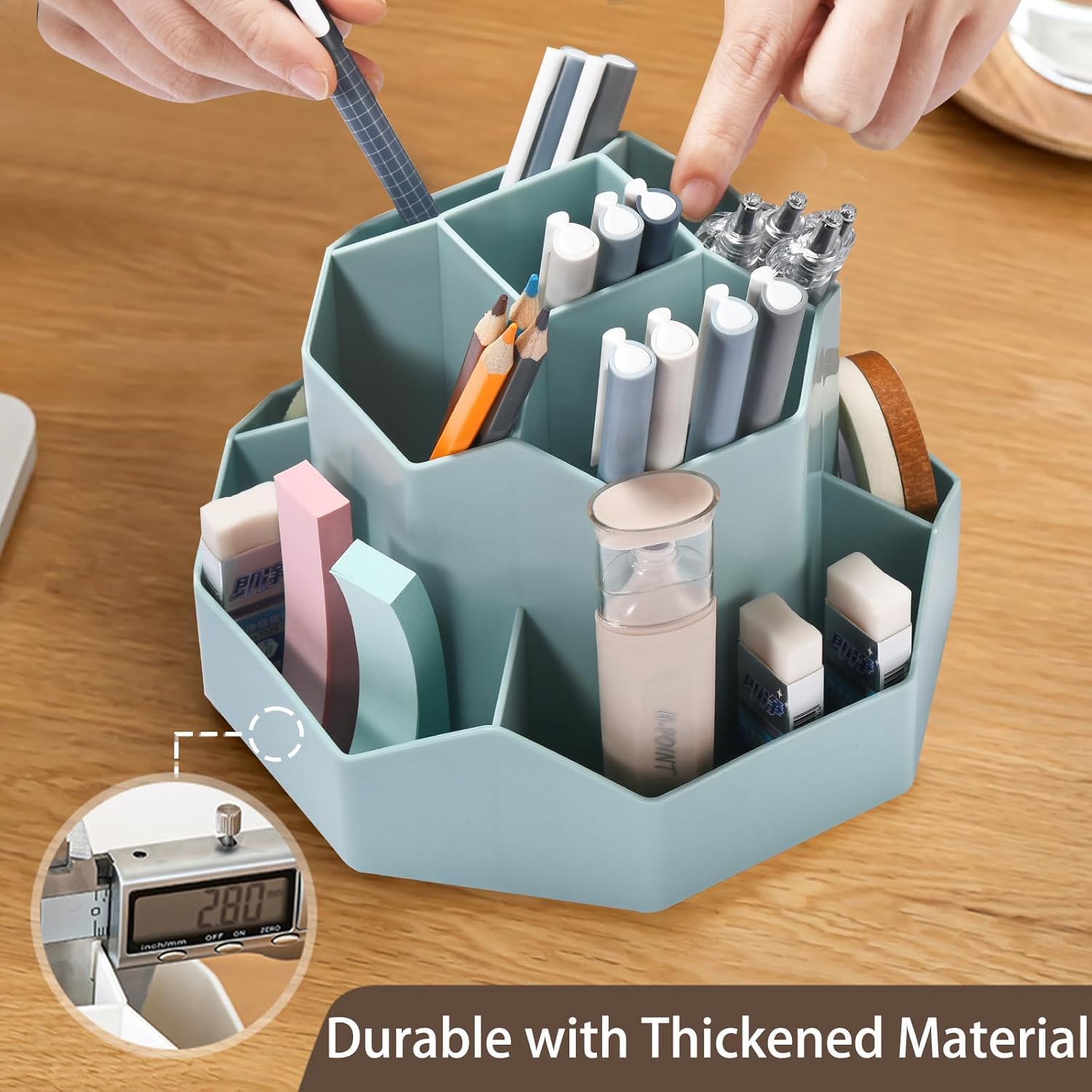 Pencil Pen Holder for Desk, 9 Slots 360 Degree Rotating Desk Organizer, Cute Pen Organizers Stationery Supplies for Office Home & Art Supply (Blue)