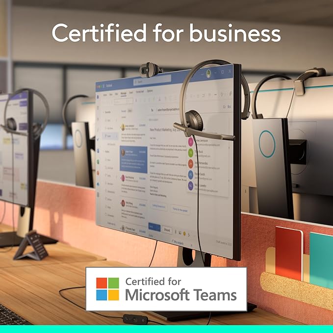 - Certified for Microsoft Teams: This USB headset features 2 noise-canceling microphones and a 30mm audio driver to ensure you can hear and be heard clearly in noisy open workspaces