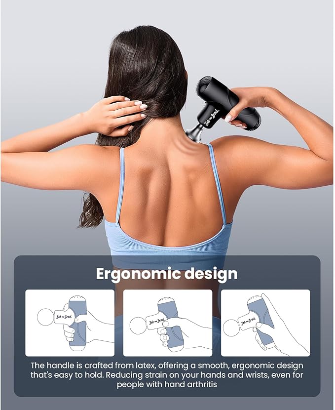 - High-Performance Brushless Motor & Deep Tissue: The Q2 Mini Massage Gun features a brushless motor delivering 3000 RPM for powerful, deep tissue therapy. The motor ensures quiet operation, durability, and consistent power, outperforming traditional motors. With 3000 RPM, it relieves tension, improves circulation, and speeds recovery. Compact yet powerful, itβs perfect for athletes, fitness enthusiasts, or anyone seeking professional-grade relief.