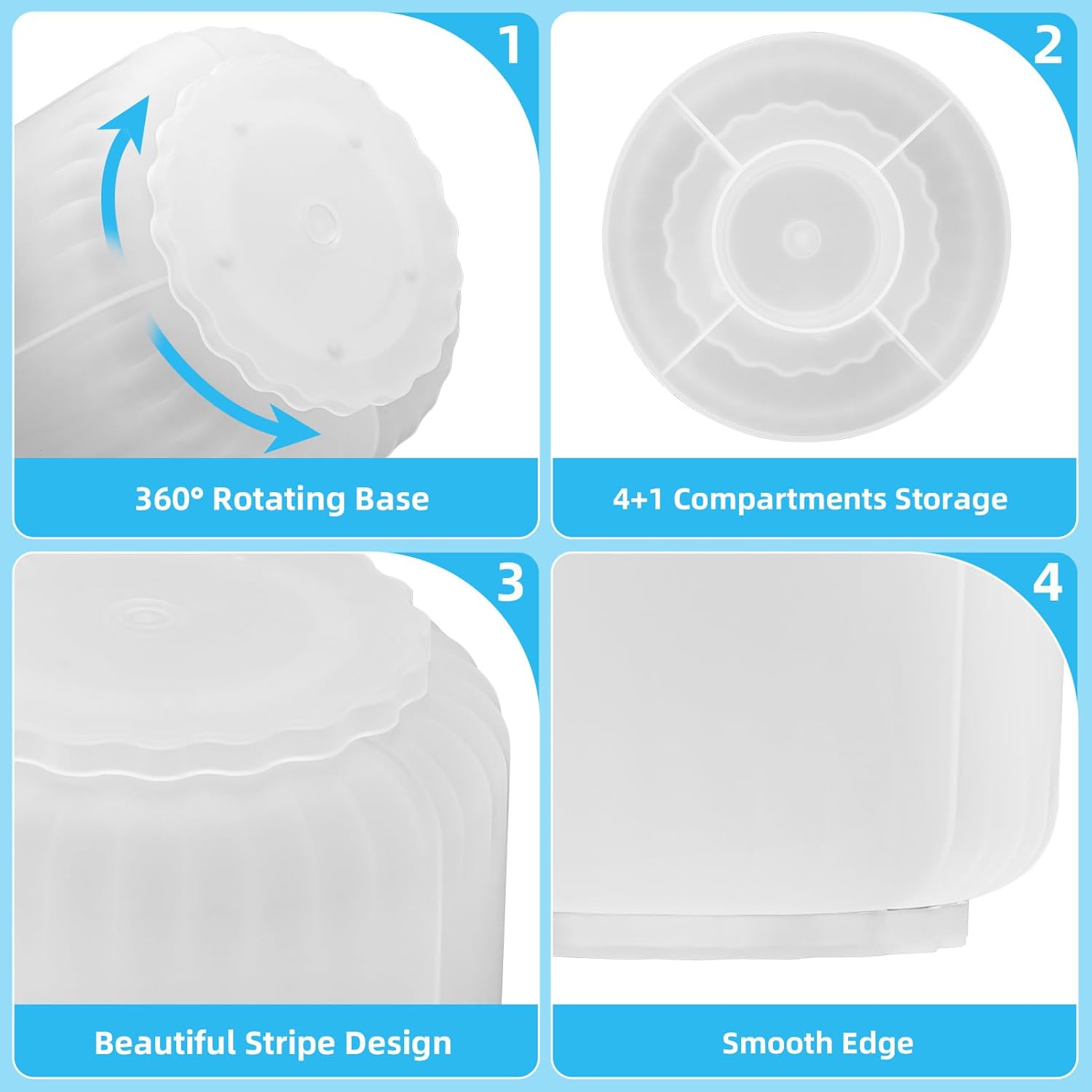 - 【Space-Saving】: The special round design of the organizer was designed to make items easy to reach, even when stored on upper shelves; Divided into 5 compartments, this spinning container makes it easy to separate and store a wide variety of items; Use this convenient storage to keep children's crafting items all in one place; Great for school supplies, Perfect for home or commercial workspaces