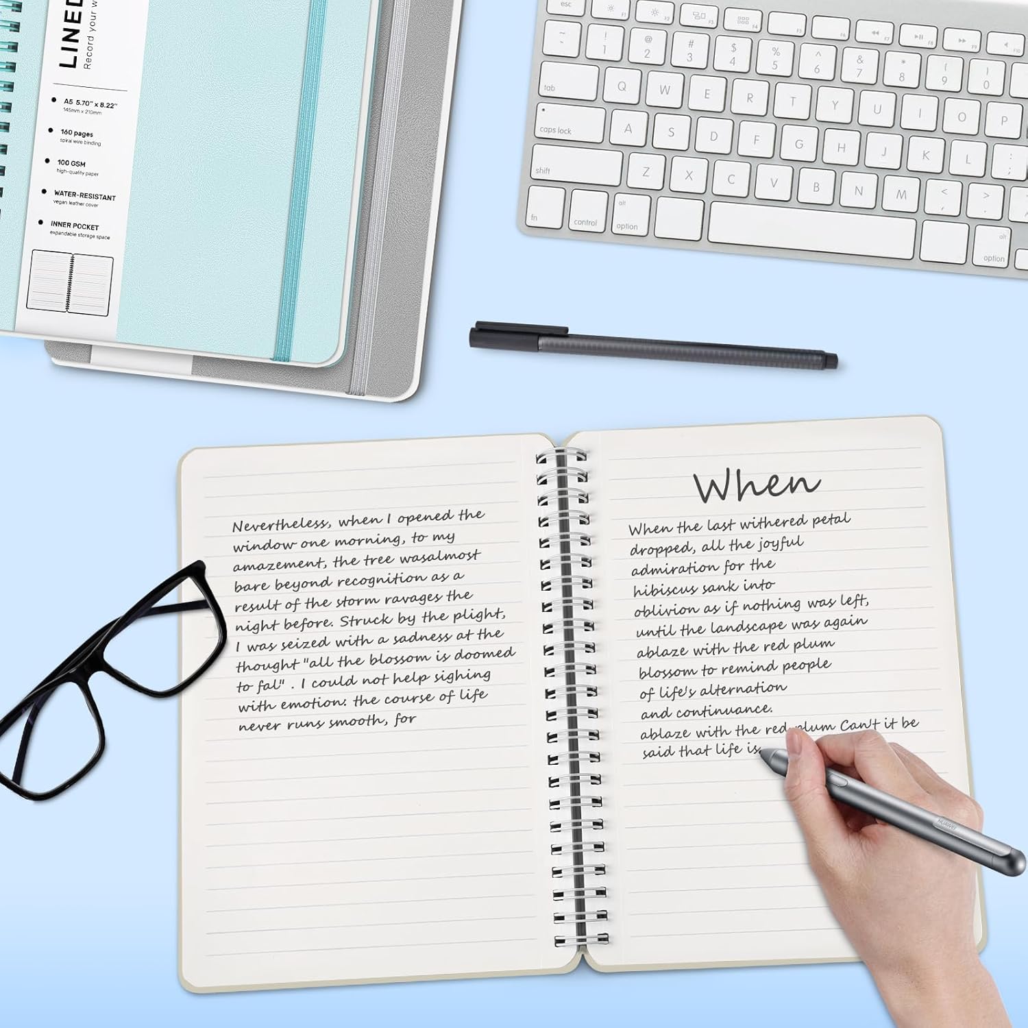 - 160 Pages A5 Notebook - This medium 5.7 x 8.2 inches A5 lined journal notebook features a waterproof Morandi Cream faux leather cover, 8mm space classic college ruled notebook, total of 160 pages. The professional durable water-resistant plastic hard cover will protect your notebooks, which have oil-resistant and anti-bending properties, effectively protecting the internal paper of the journal and providing a comfortable writing surface.