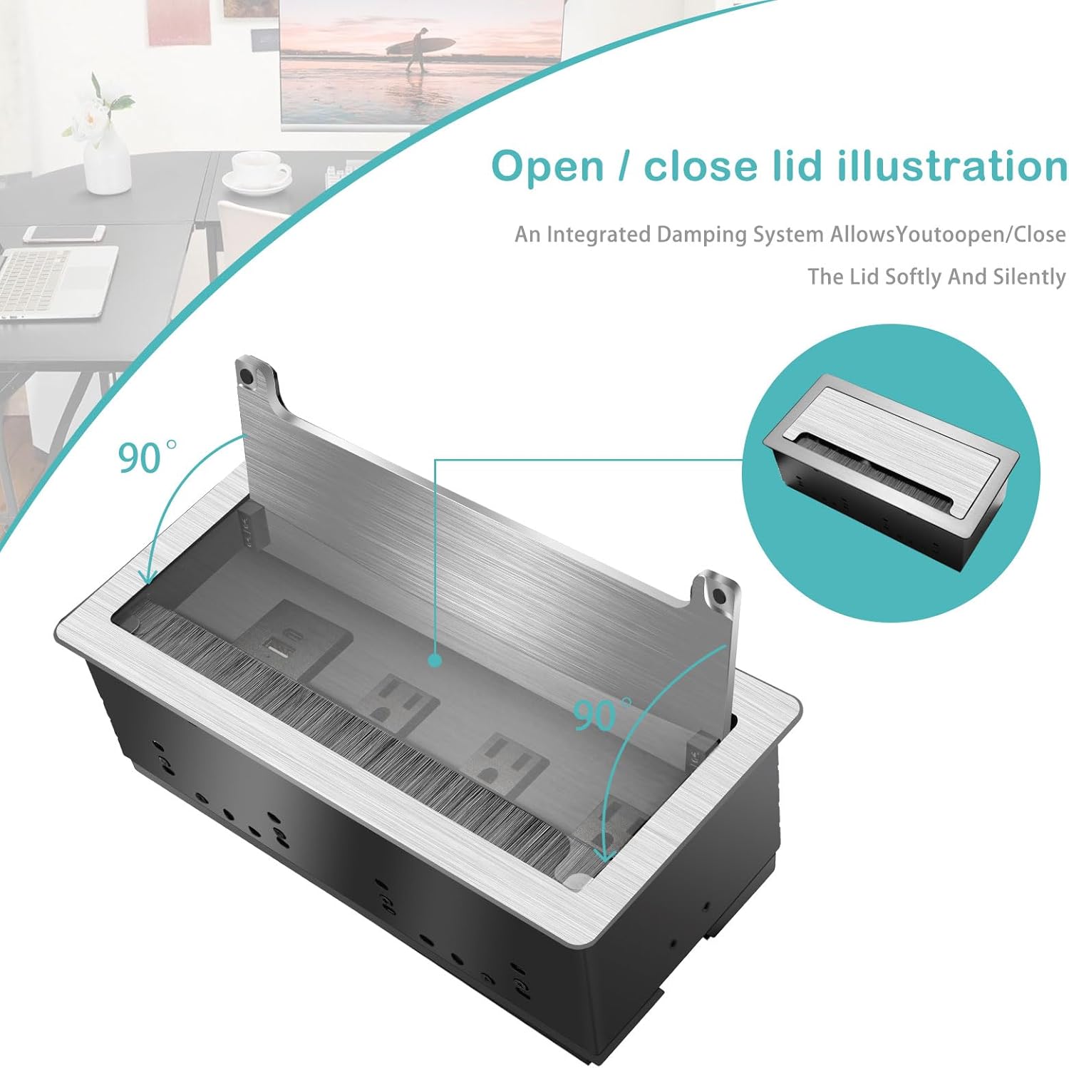- 【Safety Guaranteed】- Fire-resistant outer shell and built-in safety system provides you and your devices with complete protection. While not in use, the unit closes flush with the table and opens and closes by pressing on top panel