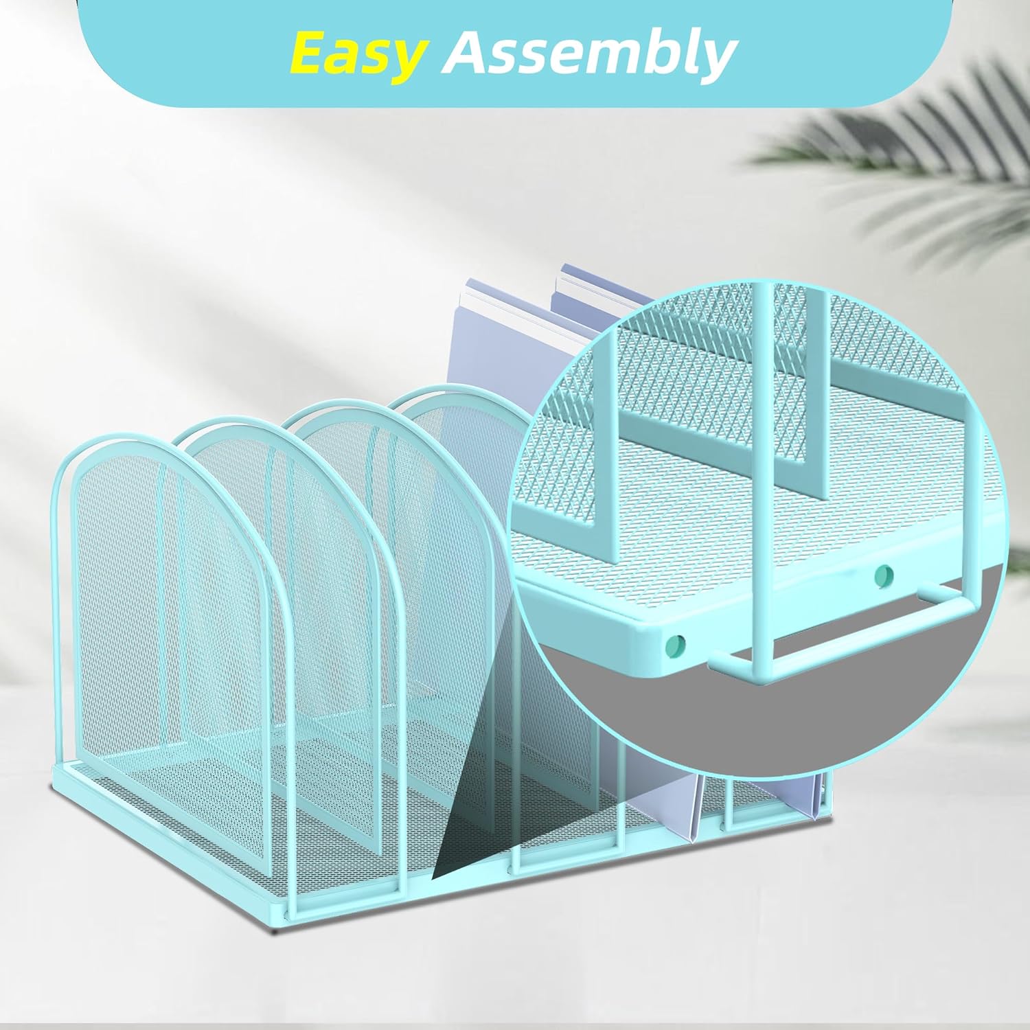 SUPEASY File Organizer 5-Section Mesh Desk Organizer, Upright File Organizer Desktop Organizer File Sorter, File Folder Holder for Office Supplies, Blue
