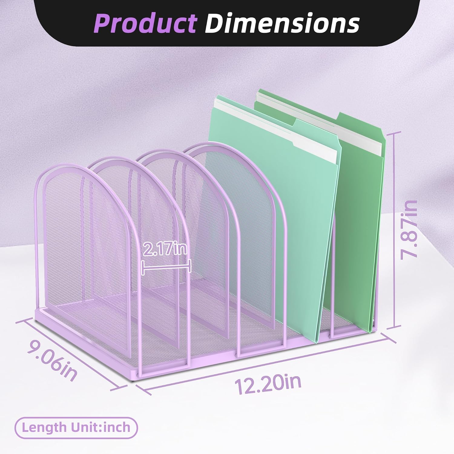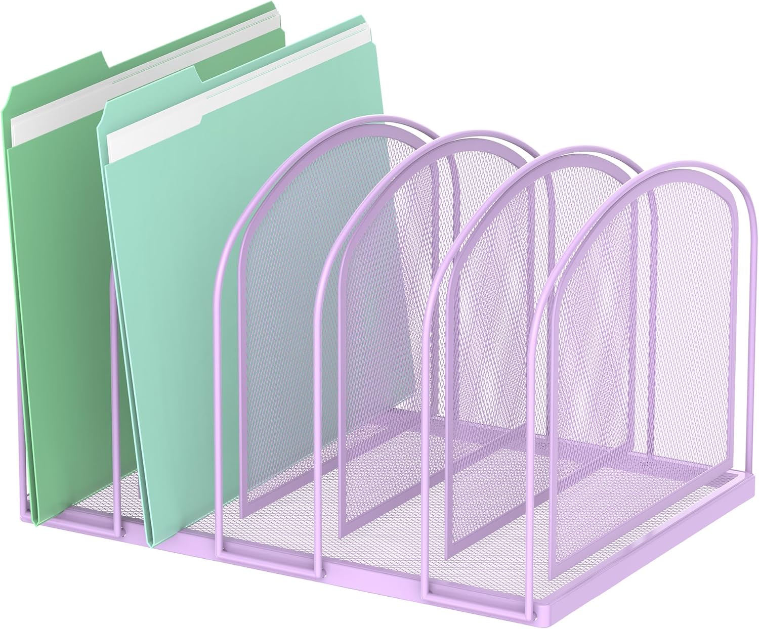 SUPEASY File Organizer 5-Section Mesh Desk Organizer, Upright File Organizer Desktop Organizer File Sorter, File Folder Holder for Office Supplies, Purple