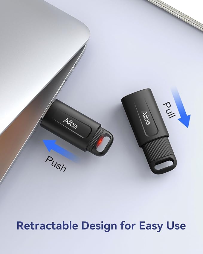- Sleek and Practical Design: The thumb drive is retractable design can effectively protect the USB interface; The end of the jump drive has a loop that can easily be attached to your keychain or lanyard, using to help keep from losing, and for easy carrying