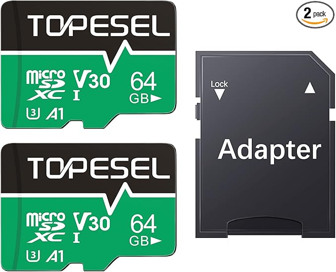 TOPESEL 64GB 2-Pack Micro SD Card, 4K Camera Pro, UHD Video for GoPro, Action Camera, Drone, Smartphone, R/W up to 90/35 MB/s MicroSDXC Memory Card UHS-I U3 A1 V30