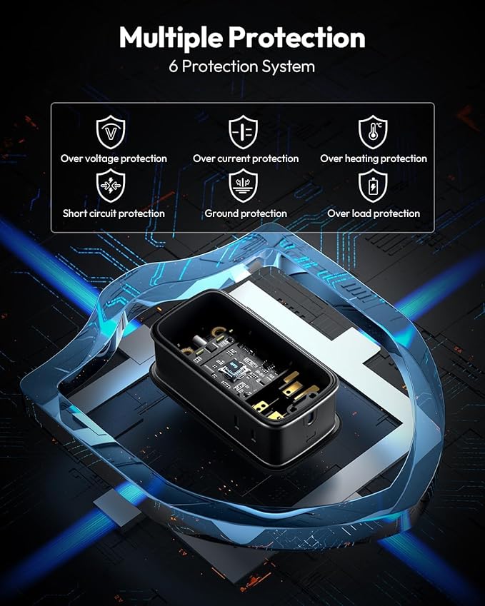 - 【Efficiency & Widely Compatible】:2 x USB C:max up to 65W or 45W+20W(C1+C2);2 x USB A: up to 15W each;All ports used:C1 provided 45W,C2+A1+A2 share 15W.Widely compatible with MacBooks, Iphones, computers, tablets, cell phones, game consoles, etc. GaN components minimize energy waste and heat production compared to traditional silicon, providing a more efficient charging experience. This extension cord with usb c ensures safe, cool charging to protect your devices while optimizing energy usage.